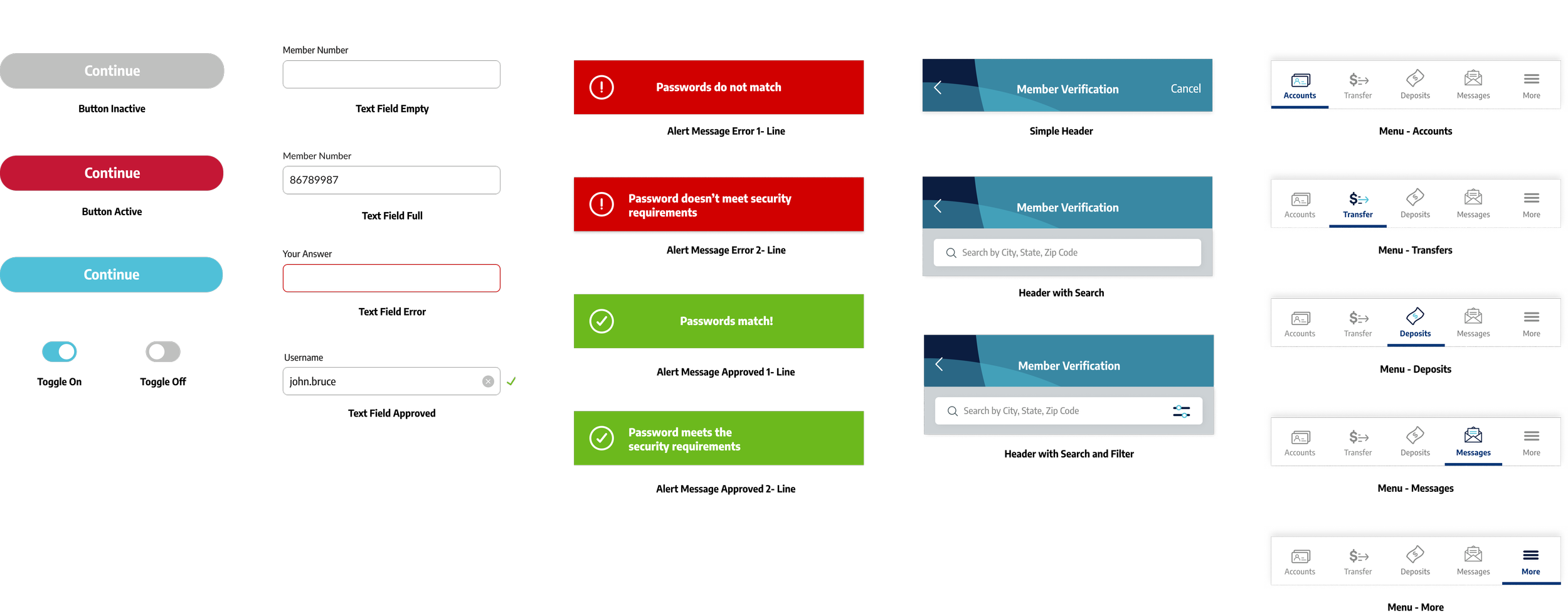 To ensure consistency and efficiency across both mobile and web platforms, I established a set of reusable components including buttons, input fields, and icons. These elements were tailored to align with TDECU’s brand standards while maintaining flexibility for future iterations. By defining a clear system of components, the design process became more agile and scalable, allowing for quicker updates, streamlined collaboration with developers, and a cohesive experience for end users across different contexts.